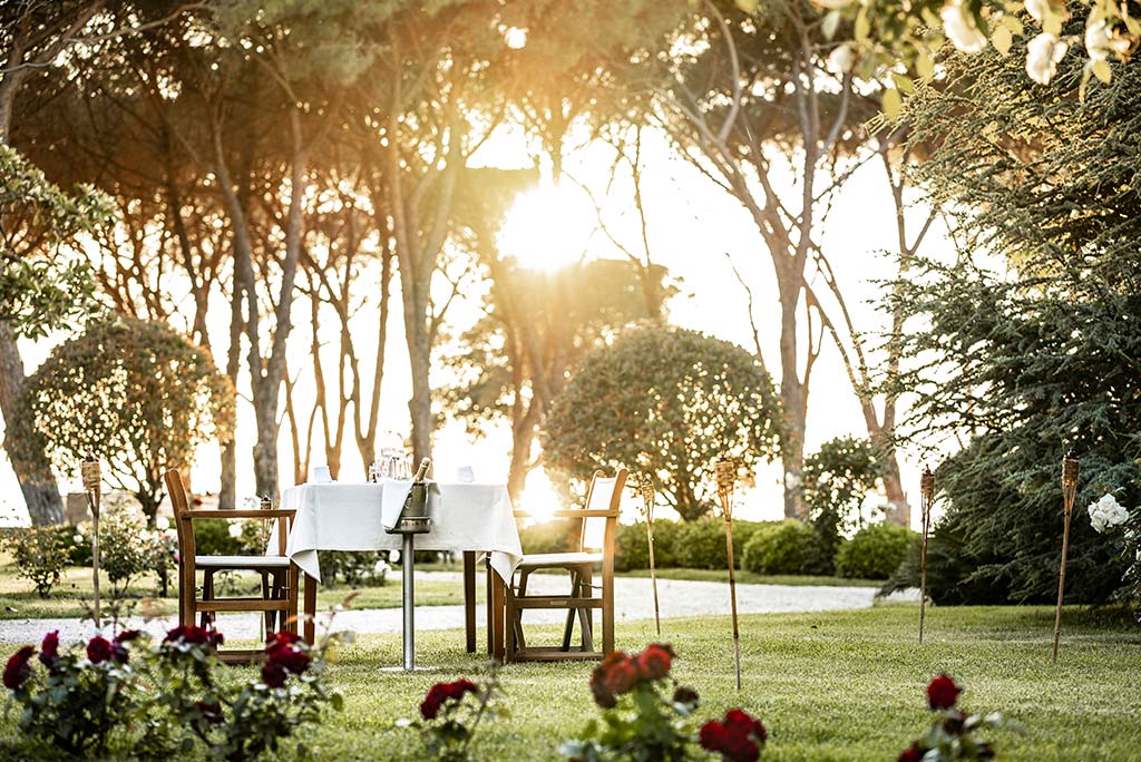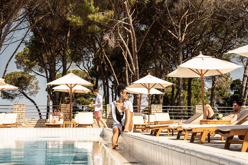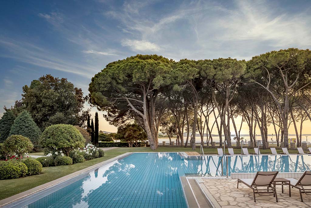 Ruhig gelegener Außenpool mit großzügigen Liegeplätzen zur Entspannung umgeben von einem romantischen Pinienpark